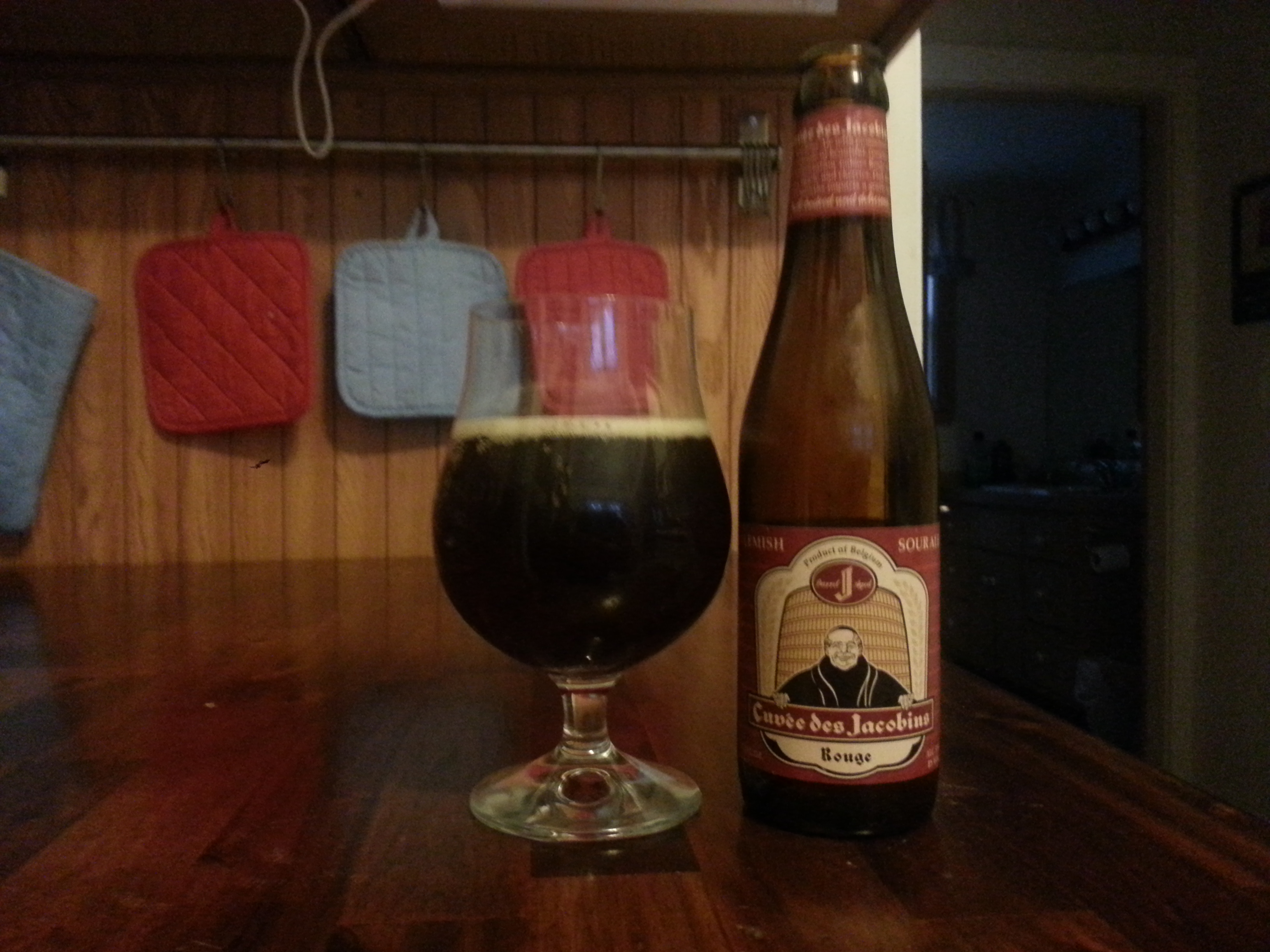I continued my journey towards discovering sour beers with Cuvee des Jacobins Rogue, a Flemish Red Ale brewed by Brouwerij Bockor NV in Belgium. Flemish red ales are typically fermented in oak barrels intentionally contaminated with Lactobacillus, which produces lactic acid during fermentation. This lactic acid give the beer its sour flavor. Belgian red malts are used to make the wort, providing its eponymous red color. The aged beer is often blended with freshly brewed beer to generate contrasting flavor and some mellowing of the acidity.