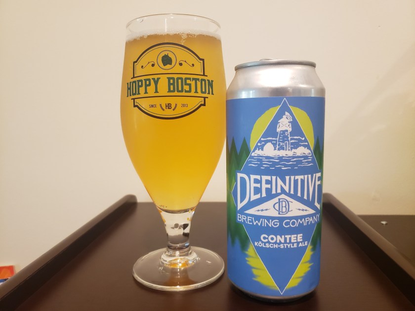 Many newer breweries are launching with a rotating stable of NEIPAs, taking advantage of the huge buzz (and resulting sales) that come with the substyle. I am a huge fan of hoppy beers in general and well-made NEIPAs specifically, so I don’t mind the proliferation of the substyle. That being said, it is frustrating to walk into a brewery and find no other options, and I know that frustration is more acute for people who aren’t fans of hop bombs. I think every new brewery should find 1-2 other styles that they do well, so at the very least they have a little variety available. When Definitive Brewing launched on Industrial Way in Portland last year they featured a number of NEIPAs, but complemented the lineup with a couple different takes on the kolsch style. I was impressed by both the kolsch and the hoppy beers when I visited,, and now Definitive is available in Massachusetts so I can try other beers from their portfolio on a more regular basis. I love light and refreshing beers on hot summer days, so I am planning on drinking more kolsch, starting with Contee, Definitive’s more “traditional” take on the style (they also do dry-hopped versions). Definitive Contee is available year-round on draft and in 16 oz cans.