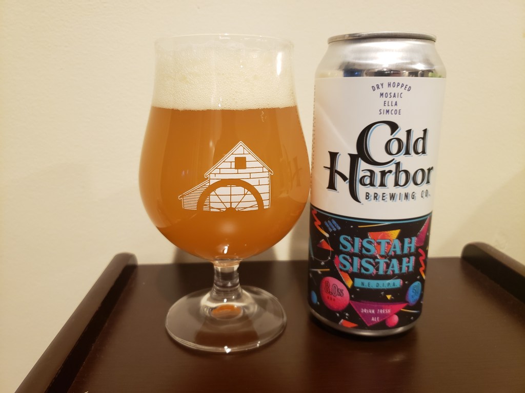 Very few breweries hit their stride right away, there is a learning curve as brewers work with new recipes, new equipment, and balancing all of the demands of the business. Some never improve, they just keep pumping out the same mediocre beer, while others are so far away to start that even improvement doesn’t get them where they need to be. The places I try to keep tabs on make good and occasionally great beer to start, they can often improve into standout breweries over time. The first time I visited Cold Harbor Brewing in Westborough I thought the beers were a little mixed, none were bad, but some were very good while others were so-so. The brewery clearly had some potential, and I’ve enjoyed a few of their new releases since. I’ve been meaning to write about one of Cold Harbor’s newer beers for a while, the thing that pushed me to finally do it was actually my buddy Mikey, he has been raving about Cold Harbor and stocking up their IPAs by the case to help get through quarantine. On my last stock-up run I grabbed some cans of Sistah, Sistah, Cold Harbor’s DIPA that is available on a rotating basis in 16 oz cans.