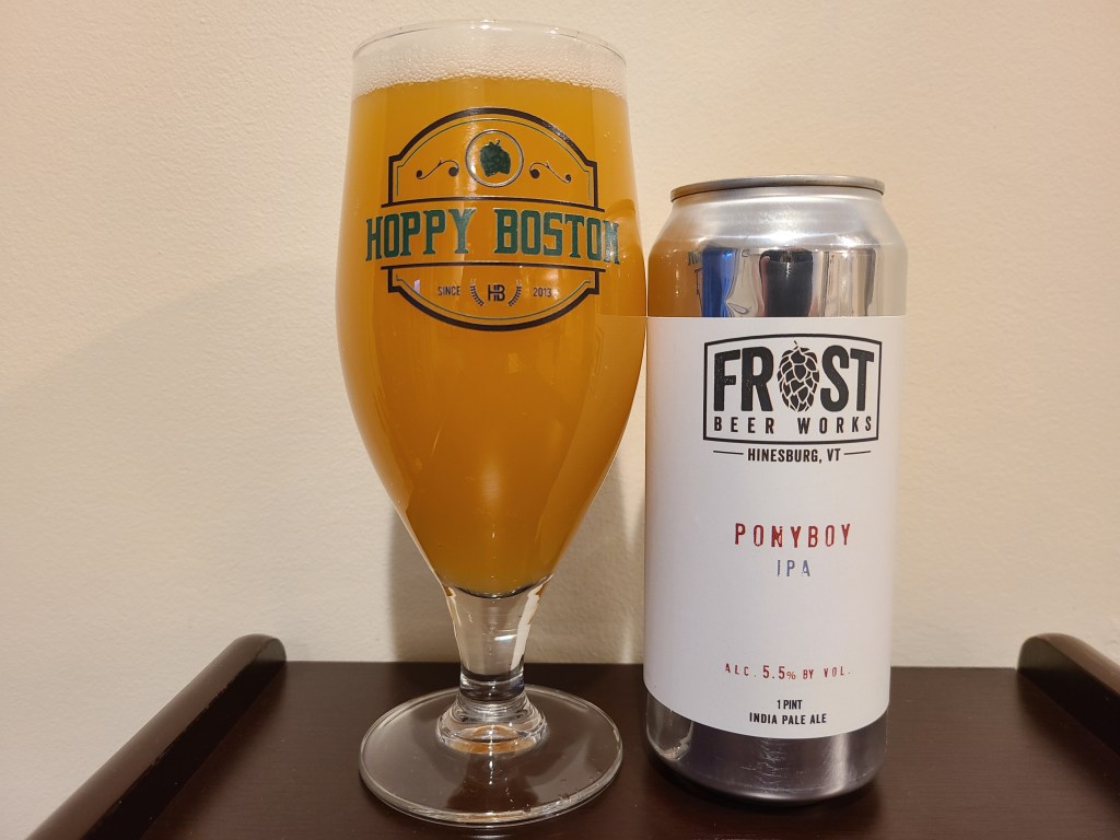 How have I never reviewed a beer from Frost Brewing? I’ve been enjoying their beers for a while, I remember buying some of their IPAs in 750 mL bomber bottles. Frost is one of the many stellar breweries from the great state of Vermont, their brewery and taproom in Hinesburg cranks out a variety of beers with a heavy focus on New England style IPAs. In addition to their taproom you can find Frost beers out in distribution in a number of northeastern states. I knew that the beers made it down to Rhode Island because my friend Amanda (who lives in Providence) saw that my last stock-up photo included Frost Ponyboy IPA and wanted to make sure I would review the beer, she is a fan of Frost IPAs but hadn’t tried this one yet. So this review is for you Amanda! Frost Ponyboy is brewed on a rotating basis and available on draft and in 16 oz cans.